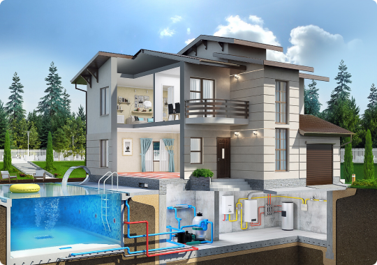 Xususiy uy, hovli, kottejlar, bino va inshootlar. Har qanday murakkablikdagi gaz ta'minoti tizimlari.